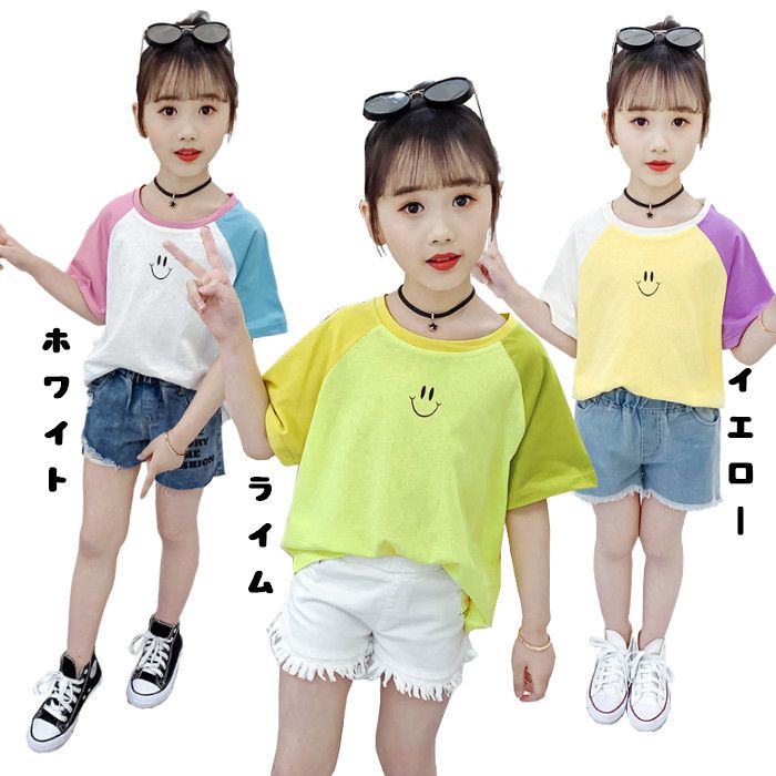 子供服 Tシャツ 女の子 半袖 子供 Tシャツ 子供服 半袖 Tシャツ デザイン ショートパンツとセット着用Tシャツ