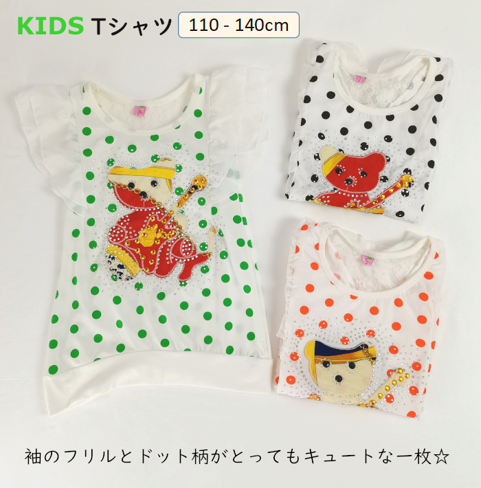 子供 Tシャツ 女の子 半袖 子供Tシャツ 子供服 フリル 半袖 Tシャツ おしゃれ 可愛い子供服 ドット柄
