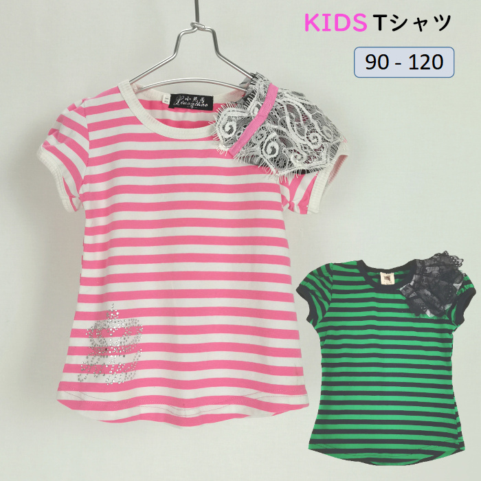 子供 Tシャツ 女の子 半袖 子供Tシャツ 子供服 フリル 半袖シャツ おしゃれ 可愛い子供服 ボーダー柄