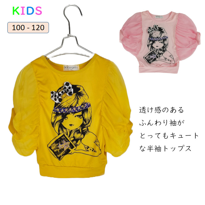 透け感のあるふんわり袖がとってもキュートな半袖トップス 可愛いキッズ ベビー マタニティ キッズファッション トップス Tシャツ カットソー