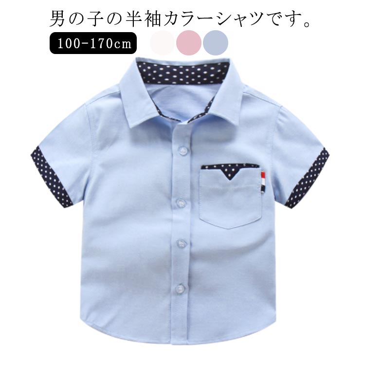 子供服 半袖 シャツ ドット柄 切り替え 襟付き 前開き フロントボタン 胸ポケット 男の子キッズ ベビー マタニティ キッズファッション トップス シャツ ブラウス