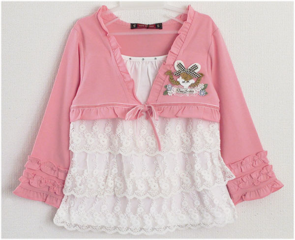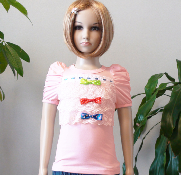 ピンクパール 可愛いガールモチーフ付きの可愛いシャツキッズ ベビー マタニティ キッズファッション トップス シャツ カットソー