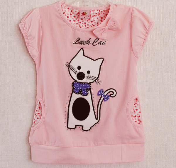 リボン&ライストーン&ねこモチーフ付の超可愛いTシャツキッズ ベビー マタニティ キッズファッション トップス Tシャツ カットソー