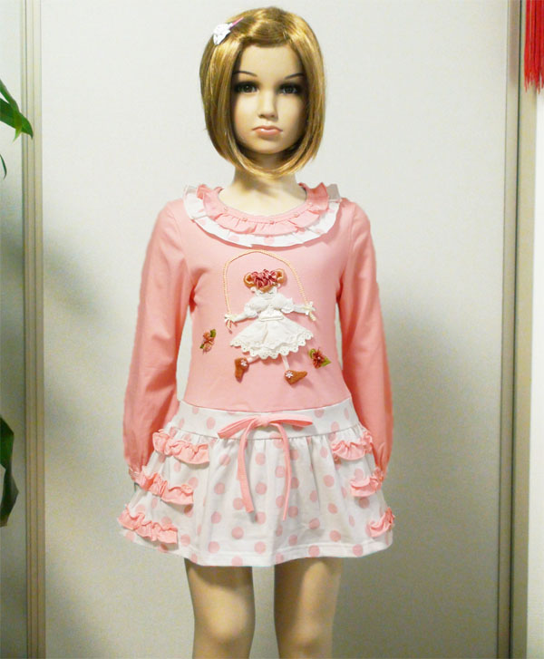 子供ワンピース 秋冬 モチーフ フリル パール付き ドット柄ボトムス キッズワンピースキッズ ベビー マタニティ キッズファッション トップス Tシャツ カットソー