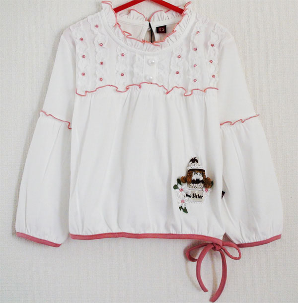 ☆襟元にギャザーを寄せてフリルやリボンをあしらった可愛い長そでカットソー☆しっかりした生地です☆キッズ ベビー マタニティ キッズファッション トップス シャツ カットソー