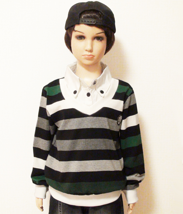 取外し可能ネクタイ付超かっこいい重ね着風ボーダー柄ポロシャツキッズ ベビー マタニティ キッズファッション トップス シャツ カットソー