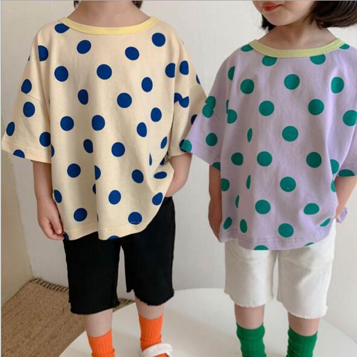 韓国子供服 半袖 tシャツ トップス 春夏 男児 水玉柄 Tシャツ 子ども 水玉柄 tシャツキッズ ベビー マタニティ キッズファッション トップス Tシャツ カットソー