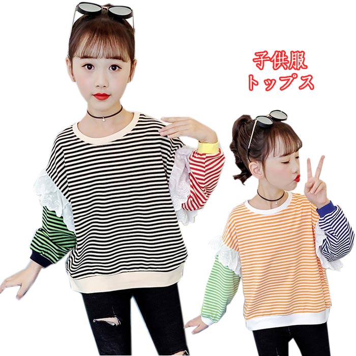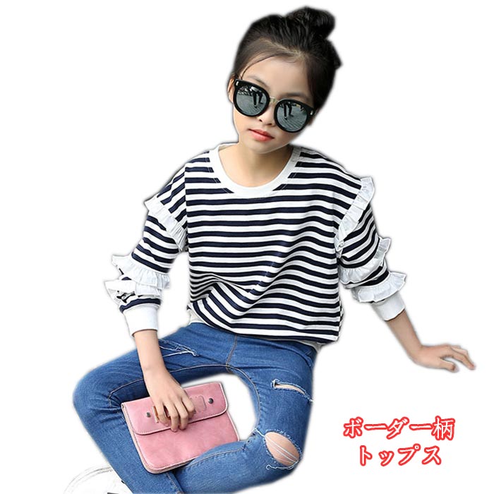 キッズ 子供服 長袖tシャツ おしゃれな こども用 ボーダー柄 tシャツ 女の子 110 120 130 140 150 160
