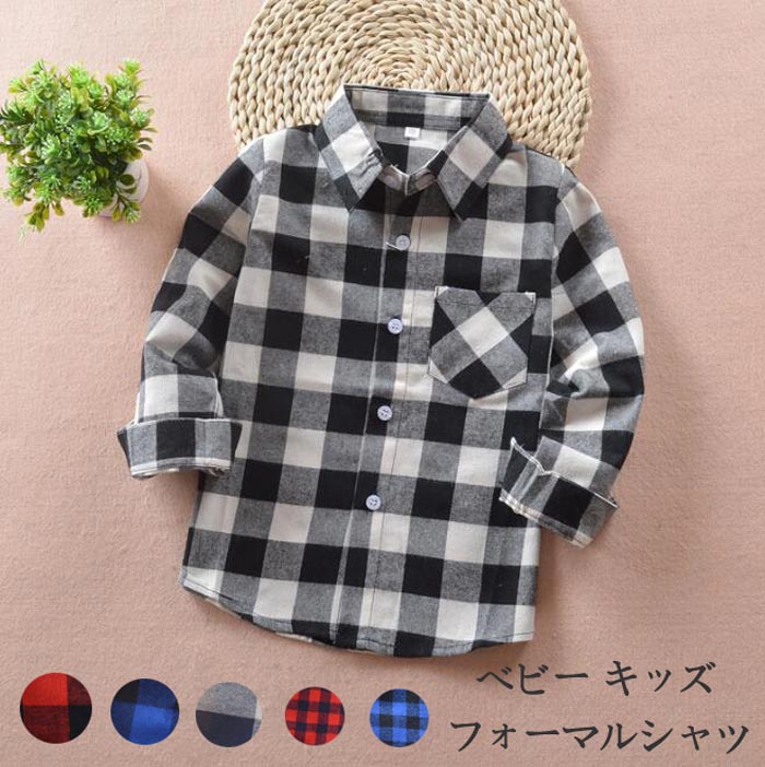 子供シャツ チェック シャツ 男の子 長袖 フォーマル 子供服 フォーマル シャツ ワイシャツキッズ ベビー マタニティ キッズファッション トップス シャツ ブラウス