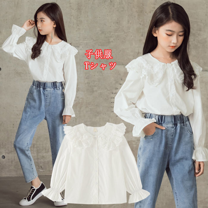 春秋着 長袖 白シャツ シャツ キッズ ブラウス 子供シャツ 女の子 長袖 ブラウスキッズ ベビー マタニティ キッズファッション トップス シャツ ブラウス