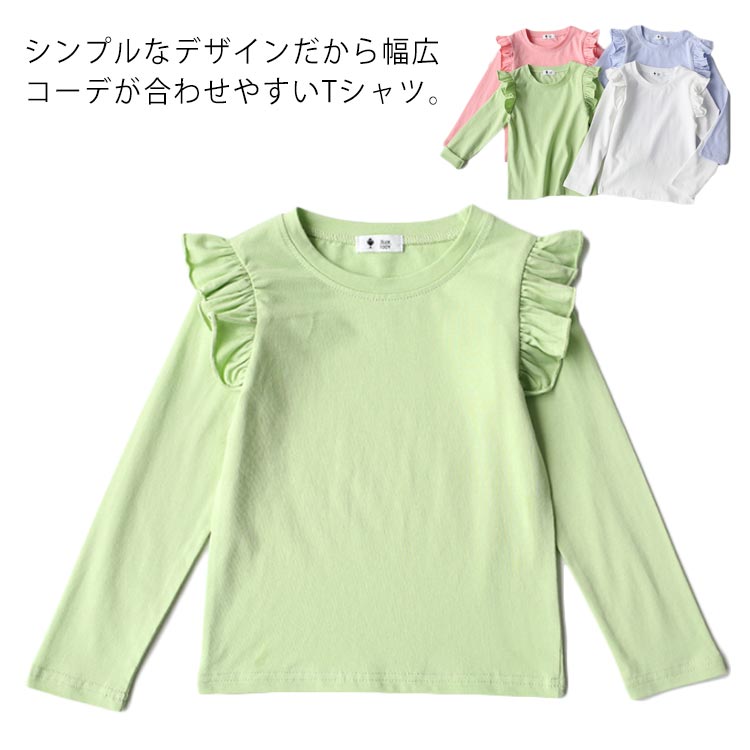 トップス ベビー服 女の子 Tシャツ フリル 通学 無地 春秋物 シンプル 子供服 長袖 幼児 柔らかい 普段着 通園 クルーネック