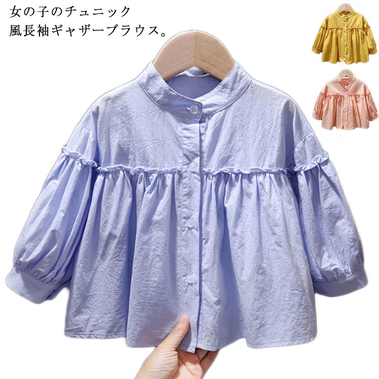 綿 コットン ギャザー ゆったり 可愛い ふんわり袖 パフスリーブキッズ ベビー マタニティ キッズファッション トップス シャツ ブラウス
