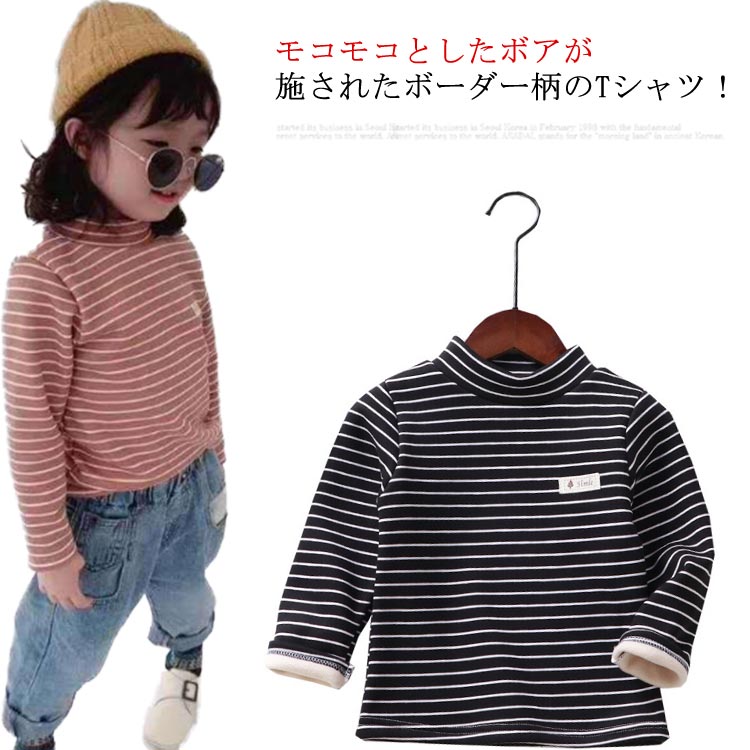 キッズ ボーダー 女の子 男の子 タートルネック あったか トレーナー 裏起毛 秋冬 厚手 長袖 Tシャツ ハイネック 子供服 ジュニア トップス 暖かい 保温 春 90 100 110 120 13