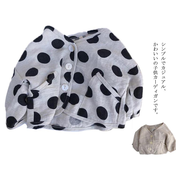 子供服 ベビー服 カーディガン 長袖 綿 麻 キッズ 男の子 女の子 リネン 春 夏 秋 カット 薄手 水玉 無地 シンプル ブラウス アウター おしゃれ かわいい 通園 通学 80 90 100
