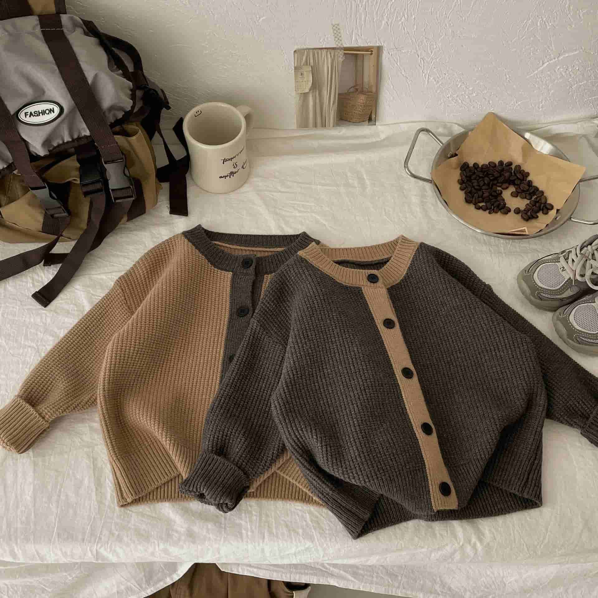 韓国子供服 こども服 女の子 男の子 子供 ベビー カーディガン ベージュ グレー キッズ 秋服 キッズ アウター ニート 無地 ジュニア 子ども 子供服 セーター 防寒 長袖 春秋 ボタン