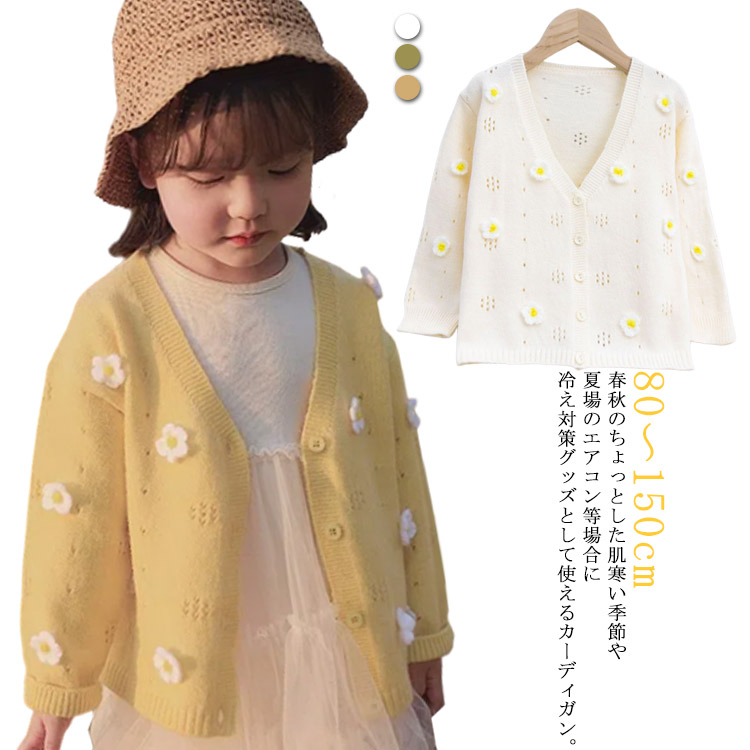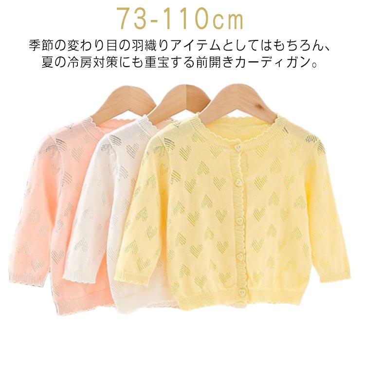 子供服 カーディガン 長袖 羽織り サマーカーディガン カット 女の子 綿 キッズ ベビー服 薄手 春 夏 秋 透かし雕り 無地 通園 通学 冷え対策 冷房対策 おしゃれ かわいい 70 80 9