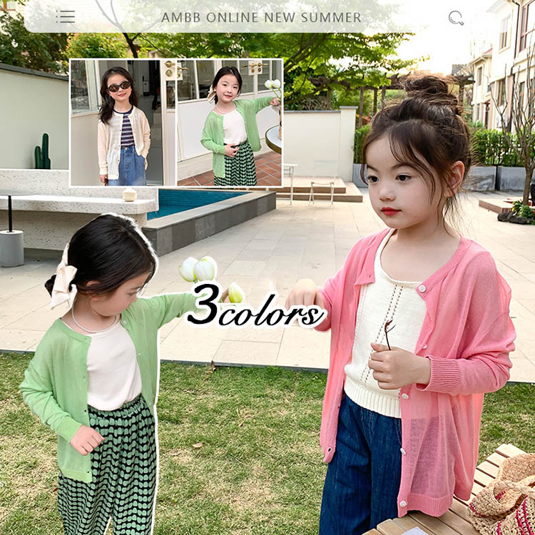 日差し 対策 秋冬 洗える 着回し 薄手 カーディガン トップス 羽織り ショート丈 キッズ 子供服 ジュニア