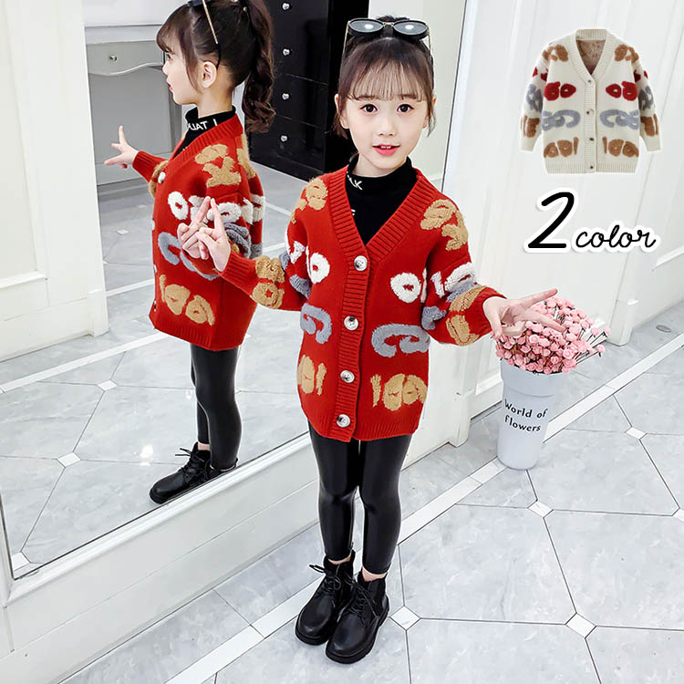 カーディガン 春服 女の子 ニットカーディガン キッズ ニットセーター 暖かい 子供コート 子供服 女の子 セーターコーディガン