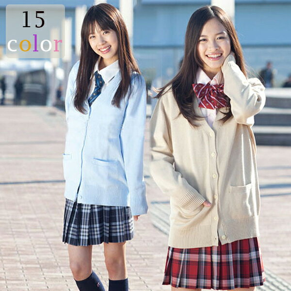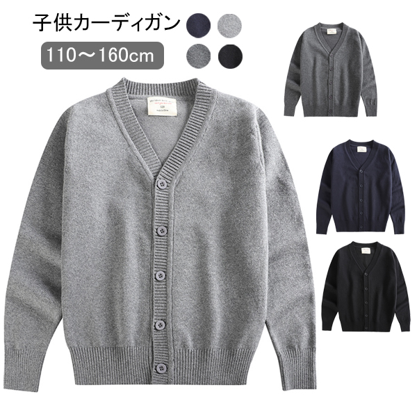 スクールカーディガン 制服 無地 長袖ポケット付きゆったり15色Vネック綿100% レディースキッズ ベビー マタニティ キッズファッション トップス カーディガン ボレロ