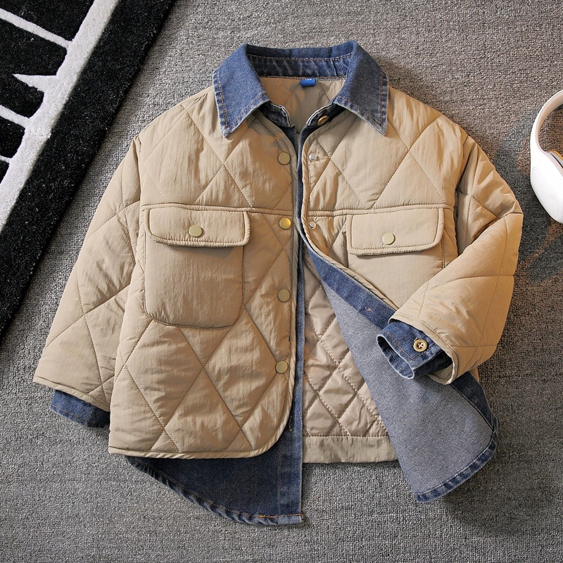 ジャケット キッズ 子供服 男の子 女の子 中綿アウター レイヤード風 中綿ジャケット 防寒 暖かい 冬物 冬服 無地 ジュニア 韓国子供服 120cm 130cm 140cm 150cm 160cm