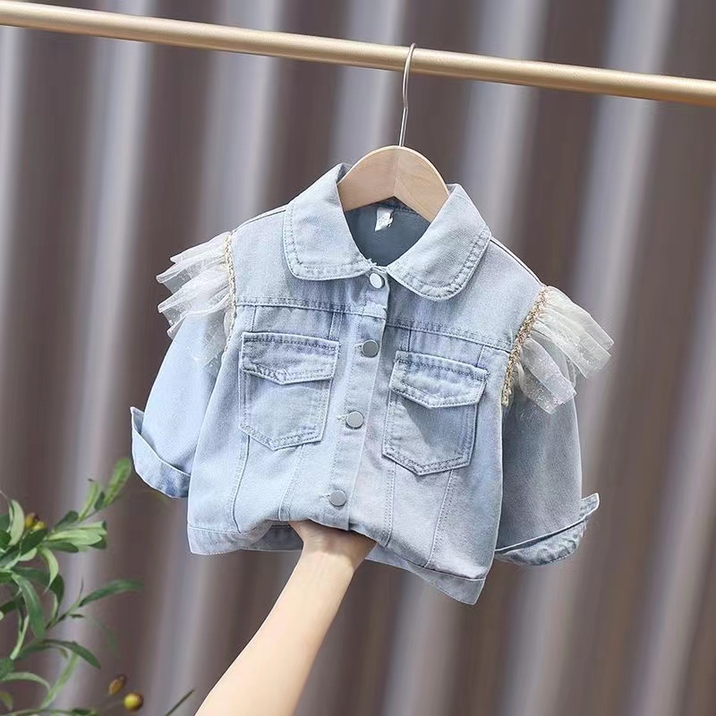キッズ 子供服 ベビー服 デニム デニムジャケット トップス アウター デニムアウター ライトアウター ショートジャケット フリルジャケット ジャケット ブルゾン ジャン ジージャン 女の子 折襟