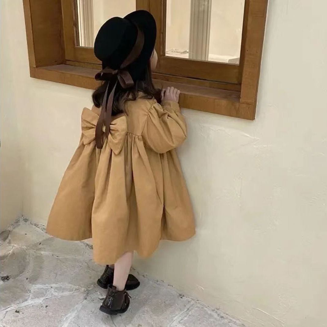 ワンピースコート キッズ トレンチコート アウター 羽織 長袖 子供服 子ども服 女の子 キッズ ガーリー 春 秋 無地 大人っぽい プリンセス お姫様 面接 発表会 セレモニー シンプル かわいい