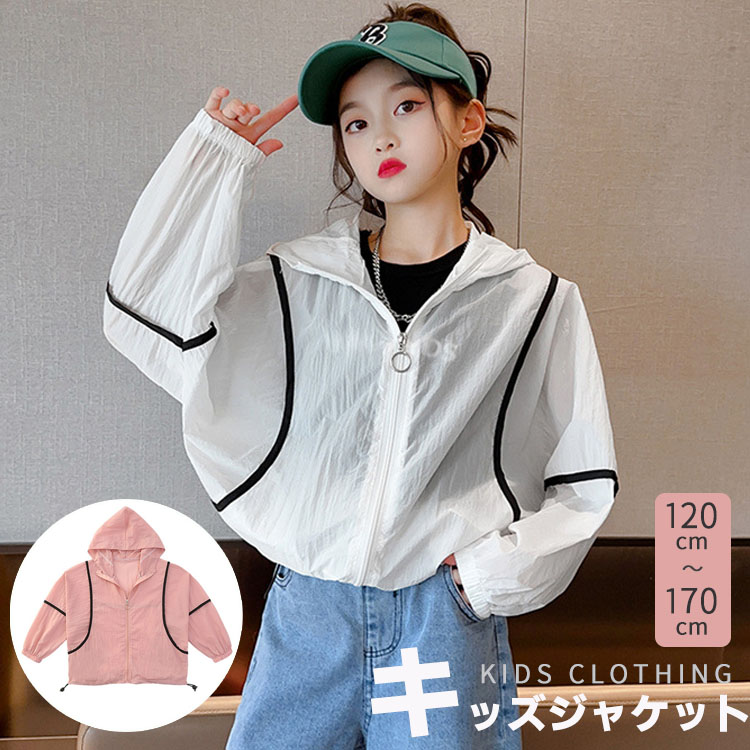 ラッシュガード キッズ ガールズ ジャケット 普段着 防風 前ファスナー ピンク ホワイト 白い 透ける