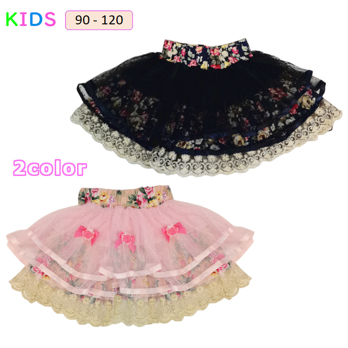 花柄スカートに2段シフォンフリルのチュチュスカート レギンスやスパッツとの相性もキッズ ベビー マタニティ キッズファッション スカート