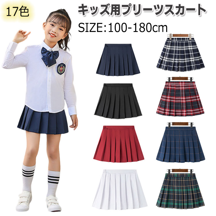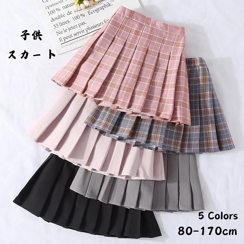 無地 ミニスカート ボトムス スクール制服 ガールズ ゴム付き 子供服 プリーツスカート インナーパンツ付き 学院風 通学通園 撮影記念