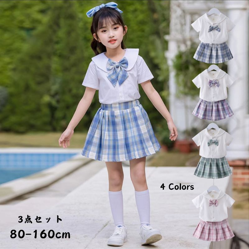 ミニスカート ボトムス スクール制服 3点セットアップ ガールズ 子供服 プリーツスカート 学院風 通学通園 撮影記念