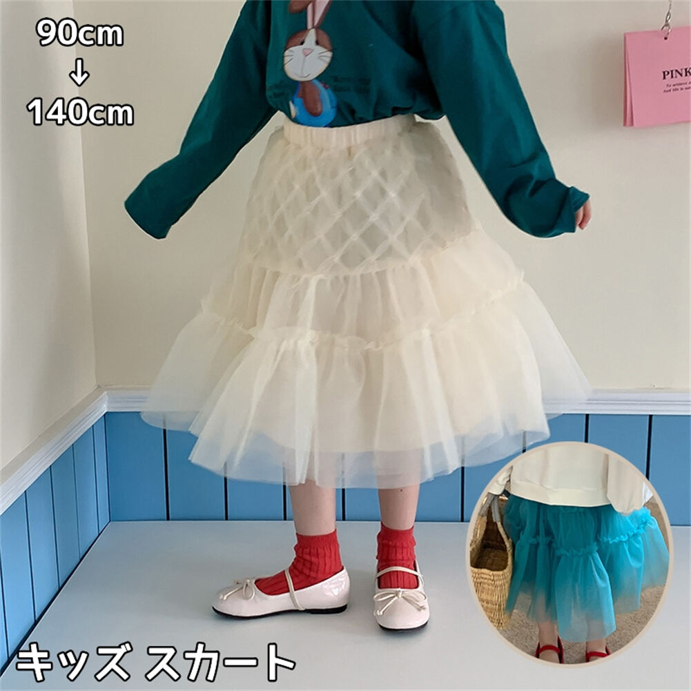 ロングスカート 子供服 チュール スカート マキシ丈 春秋 ハイウエスト カジュアル ボトムス 女児 女の子 キッズ 子ども ゆったり 可愛い きれいめ 卒園式 入学式 パーティ 100-150cm