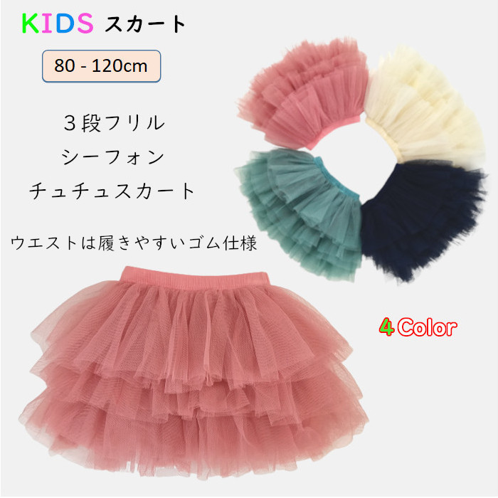 可愛いレース重ねボリュームシフォンチュチュフリルスカート ふわふわチュールスカートキッズ ベビー マタニティ キッズファッション スカート