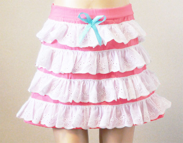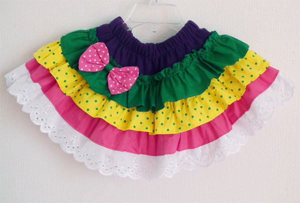 ドット柄リボン付♪レース裾の色鮮やかな超可愛い3段フリルミニスカートキッズ ベビー マタニティ キッズファッション スカート