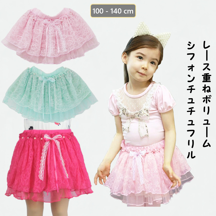 パンツ付き♪レース重ねボリュームシフォンチュチュスカート 女の子キッズ ベビー マタニティ キッズファッション スカート