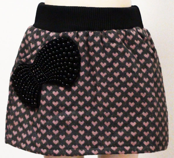 スカート 女の子 子供スカート キッズ スカート 大きいビーズリボン付き 中綿入りの可愛くてゴージャスなハート柄スカー