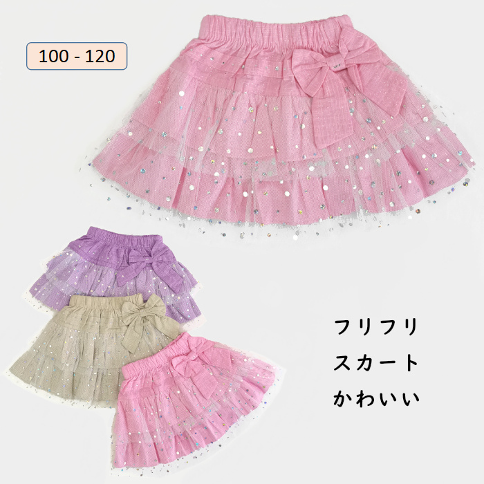 リボン&スパンコール&スワロフスキー付超可愛い2段フリルスカートキッズ ベビー マタニティ キッズファッション スカート