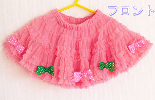 パール入りリボン付き&超可愛い2段シフォンフリル重ねドット柄スカート ショートパンツキッズ ベビー マタニティ キッズファッション スカート
