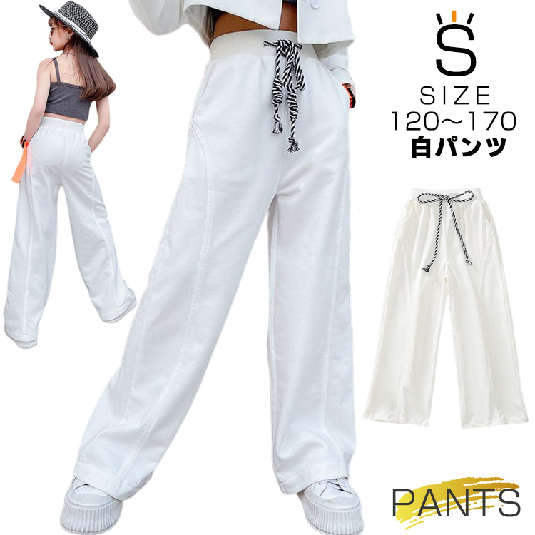 ワイドパンツ ロングパンツ 子供服 キッズパンツ ストレートパンツ パンツ ボトムス 長ズボン 子供服 ウエストゴム 女の子 120 130 140 150 キッズ
