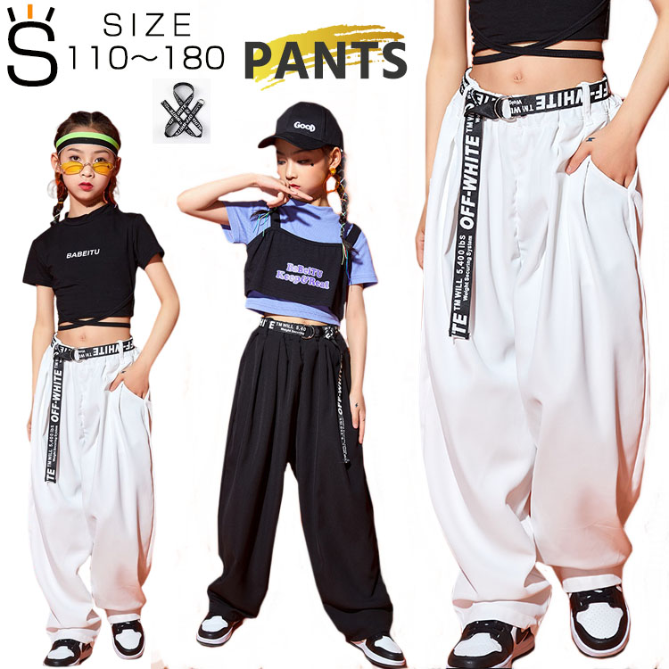 大量注文 ヒップホップ ダンス衣装 ジャズダンス 衣装 キッズ サルエルパンツ ロングパンツ 高校生 中学生 小学生 ホワイト 出演