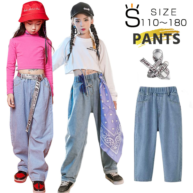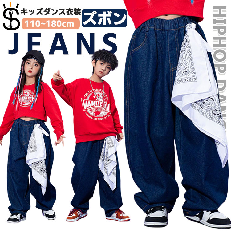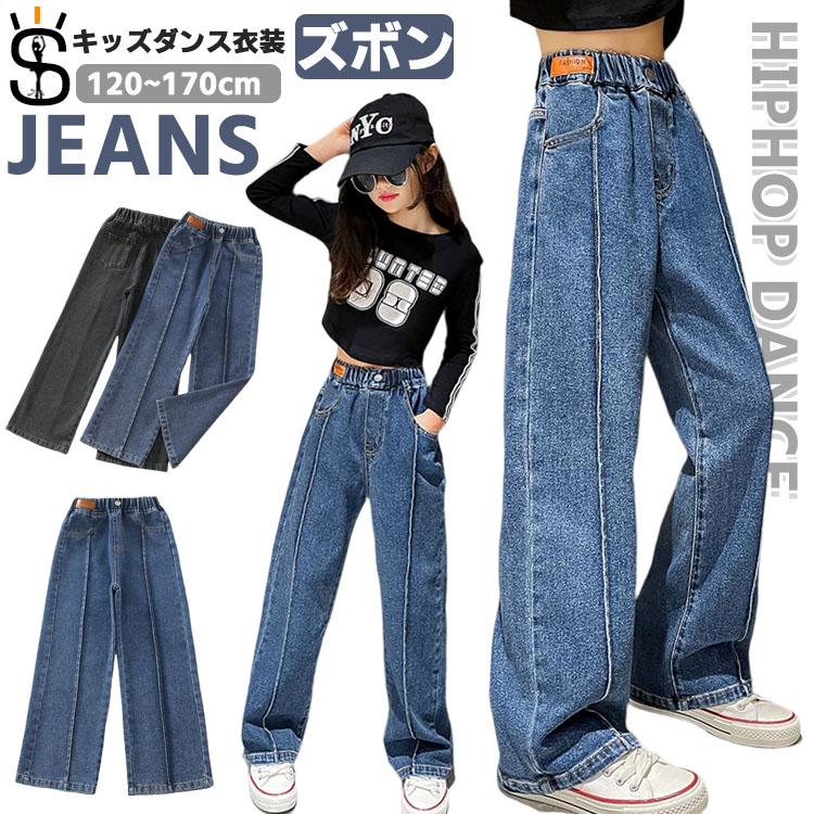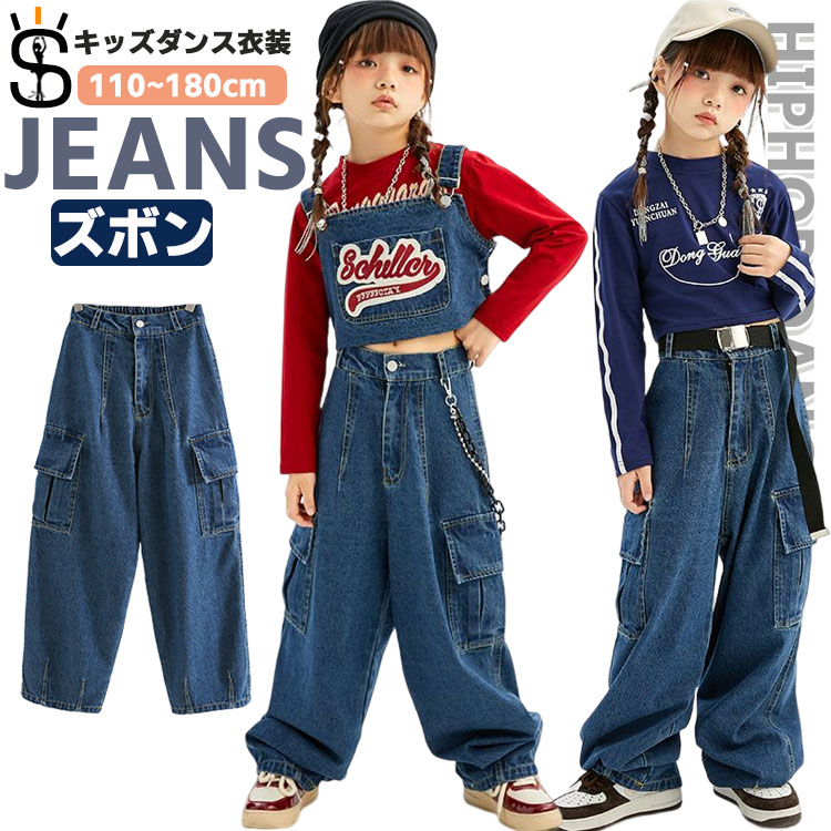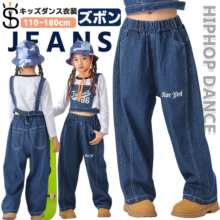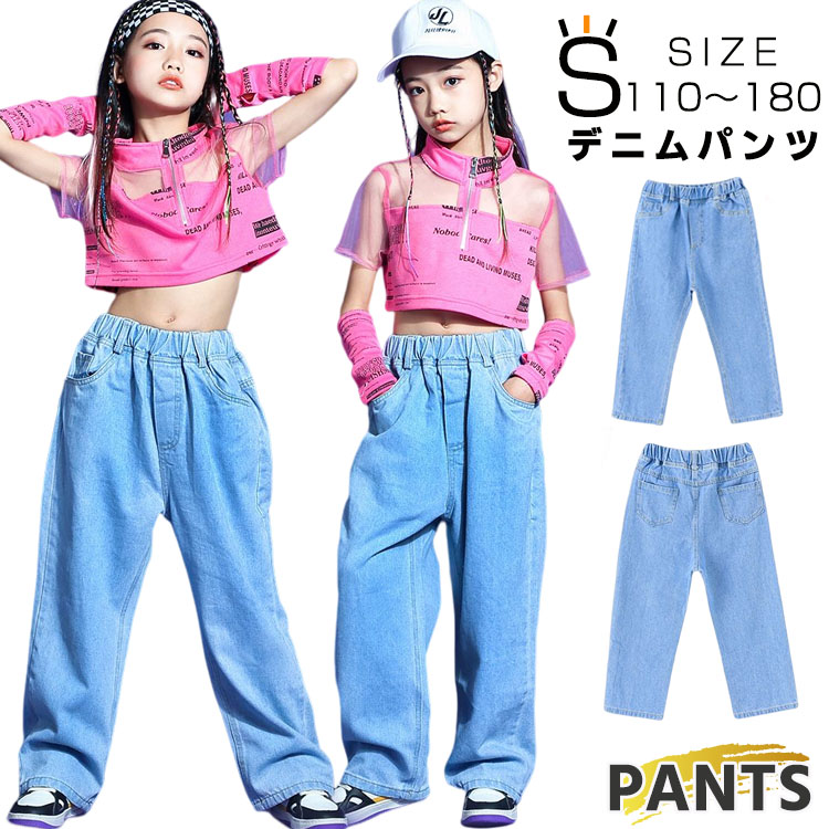 ダンス 衣装 デニムパンツ ジャズダンス 衣装 キッズ ワイドパンツ ロングパンツ カジュアル 高校生 中学生 小学生