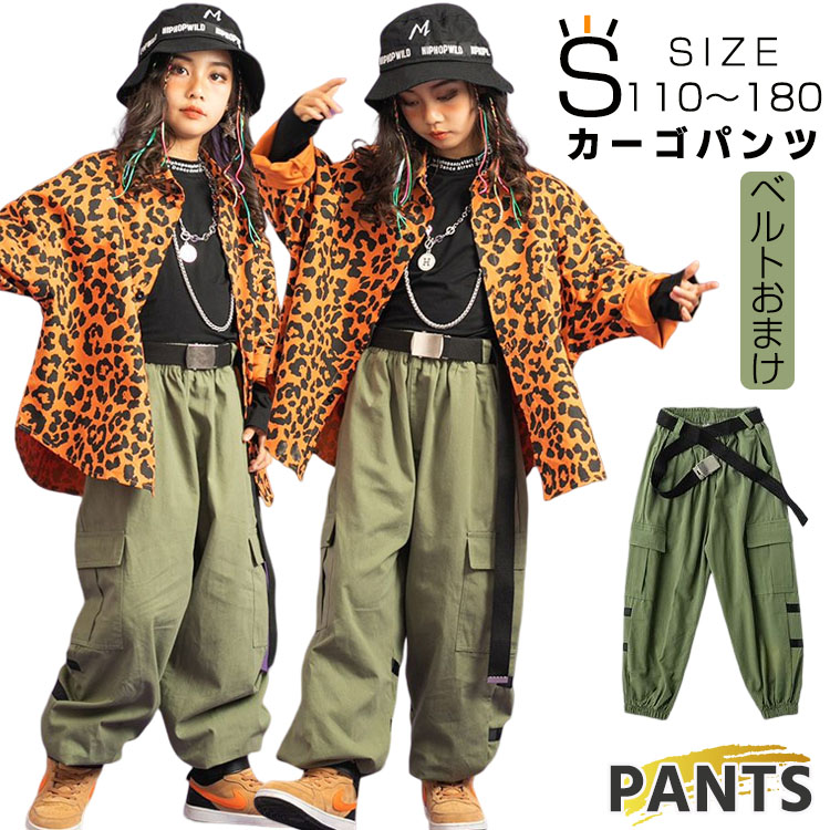 大量注文OK ベルトおまけ ヒップホップ ダンス衣装 ジャズダンス 衣装 ユニセックス キッズ ロングパンツ カジュアル 高校生 中学生 小学生 アーミーグリーン ブラック