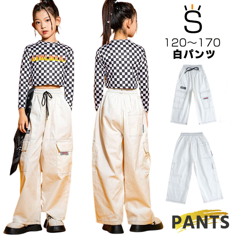 大量注文OK ヒップホップ ダンス衣装 ジャズダンス 衣装 キッズ サルエルパンツ ロングパンツ 高校生 中学生 小学生 ホワイト
