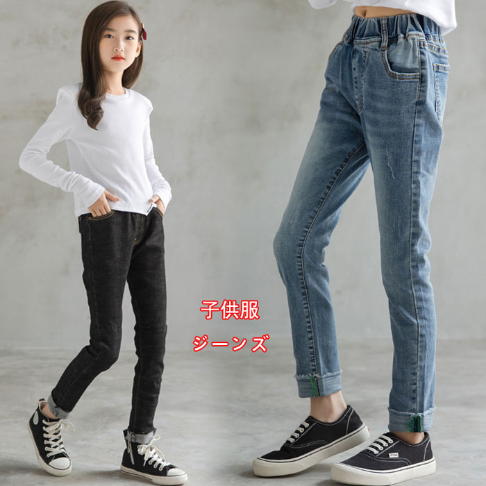 こども服 長ズボン 女の子 ダメージ ジーンズ デニムパンツ 無地 男の子 女の子 デニムパンツキッズ ベビー マタニティ キッズファッション パンツ
