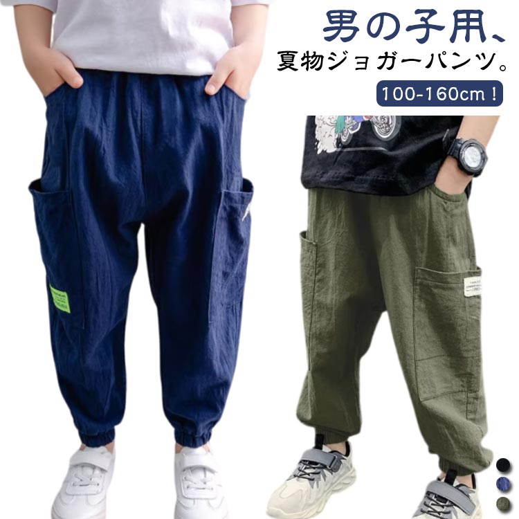 快適で涼しいリネン風の生地感 男の子用サマーパンツ 涼しい ロングパンツ 子ども服 ボトムス 接触冷感 ウエストゴム 薄手 長ズボン カジュアルパンツ