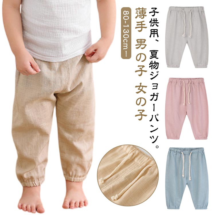 快適で涼しいコットンリネン素材を採用 子供用サマーパンツ ロングパンツ 子ども服 ベビー ボトムス 接触冷感 ウエストゴム 薄手 長ズボン カジュアルパンツ