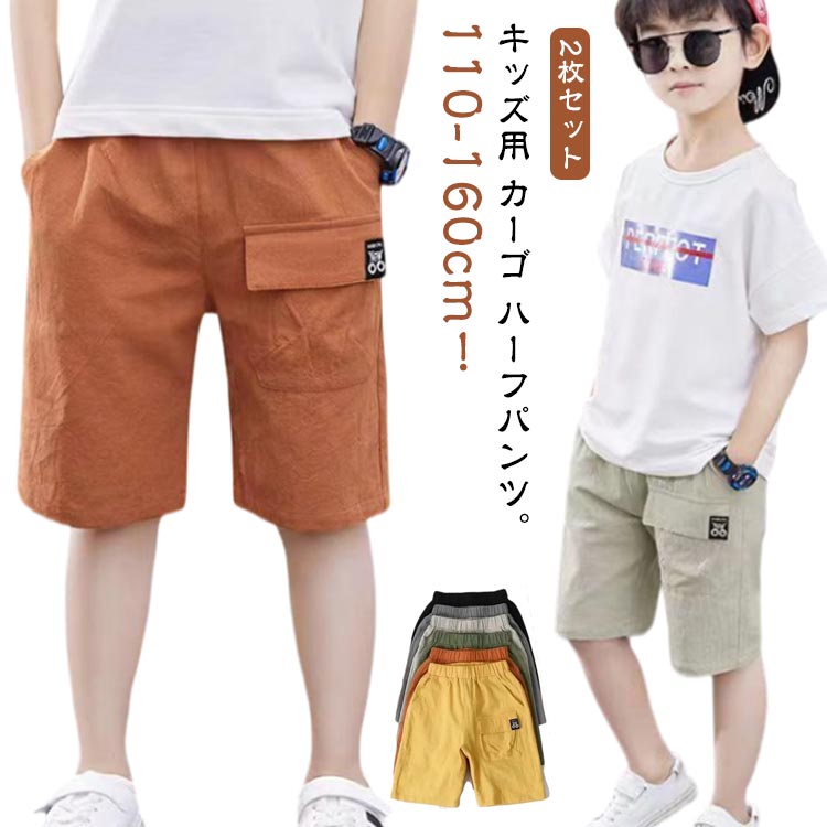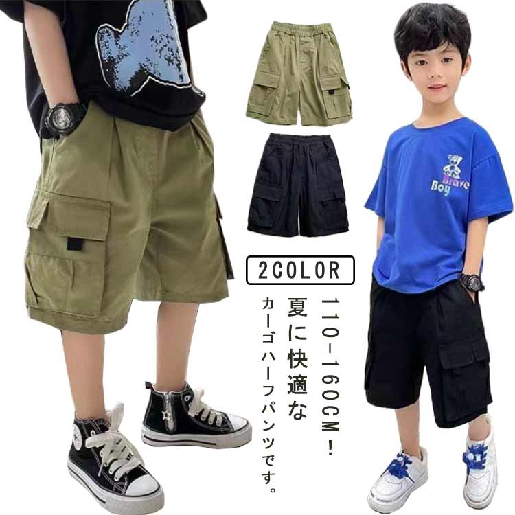 カーゴ ハーフパンツ キッズ ジュニア 男の子 ショートパンツ 短パン 半ズボン 薄手 無地 カジュアル ボトムス 子ども服 保育園 幼稚園 小学生 中学生