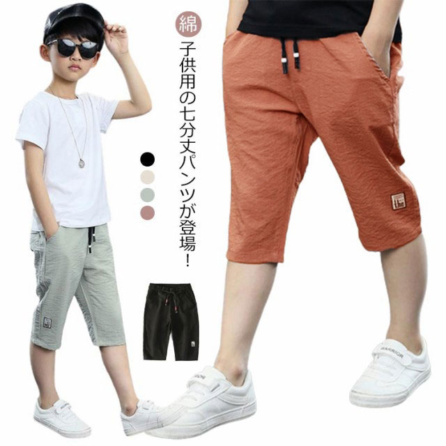 男女兼用 快適な7分丈薄手ゆったりサマーパンツ クロップドパンツ キッズ 子供服 男の子 5分丈 パンツ ボトムス カジュアル
