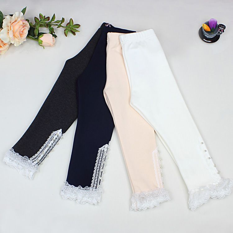 ☆裏起毛あたたかレギンス☆レース&パールがポイント☆冬の定番あたたかボトムス☆キッズ ベビー マタニティ キッズファッション 靴下 レッグウェア スパッツ レギンス