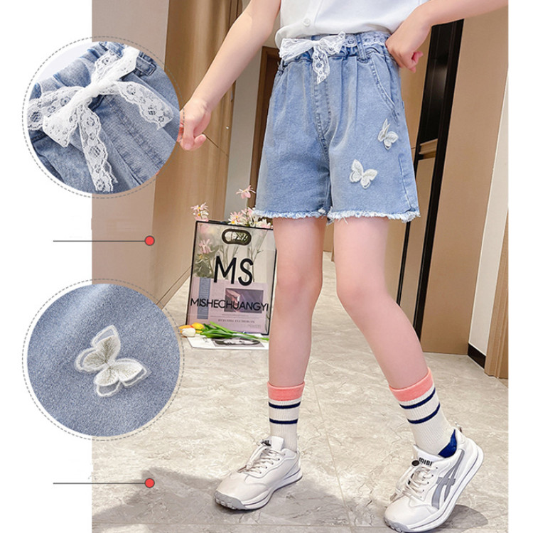 ダメージ加工にレースをプラスがオシャレ デイリーに大活躍デニムショートパンツキッズ ベビー マタニティ キッズファッション パンツ