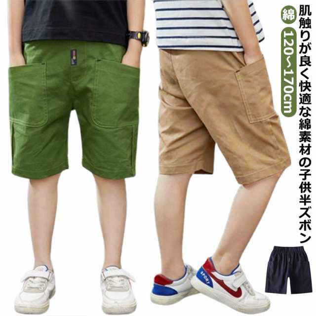 半パンツ ハーフパンツ 子供服 半ズボン 無地パンツ 綿 コットン 120cm 130cm 140cm 150cm 160cm 170cm グリーン ブラウン ネイビー